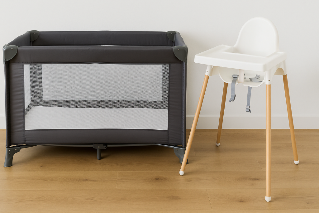 Une chaise haute et un lit parapluie sont à disposition sur demande
